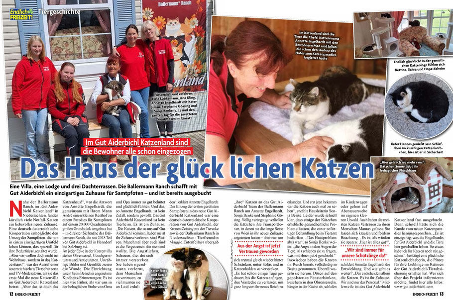 Im GUT AIDERBICHL KATZENLAND leben auf ca. 20.000 m2 verschiedene Katzen aus Tierrettungen von GUT AIDERBICHL, der Heimat der geretteten Tiere. Die Katzen im GUT AIDERBICHL KATZENLAND werden nicht vermittelt, sondern haben hier ein glückliches Für-Immer-Zuhause gefunden.